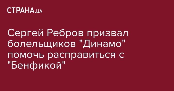 Главный тренер киевского "Динамо" Сергей Ребров попросил болельщиков поддержать футболистов в сегодняшней встрече Лиги Чемпионов с "Бенфикой". Об этом передает официальный сайт "Динамо".