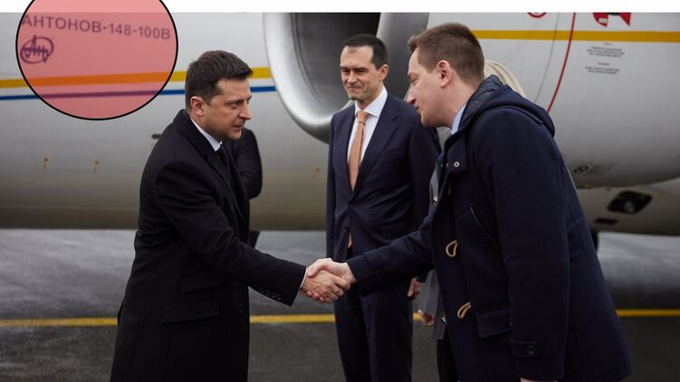 На фото, которое распространила пресс-служба Офиса президента, иллюстрируя новость о поездке Зеленского в Брюссель, видно, что самолет, на котором он туда прилетел, - это Антонов-148-100В.