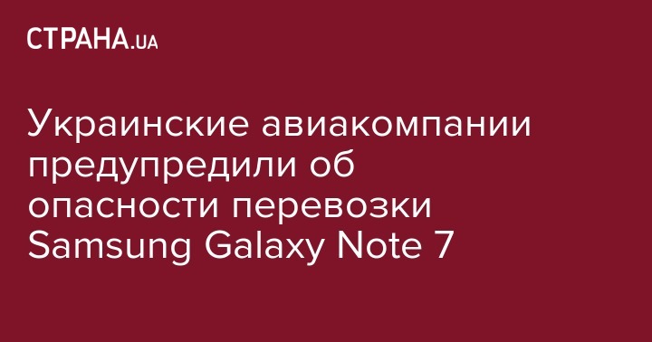 Государственная авиационная служба Украины 19 октября сообщила украинским авиакомпаниям об опасностях перевозки на борту смартфонов Samsung Galaxy Note 7. Об этом сообщает пресс-служба ведомства.