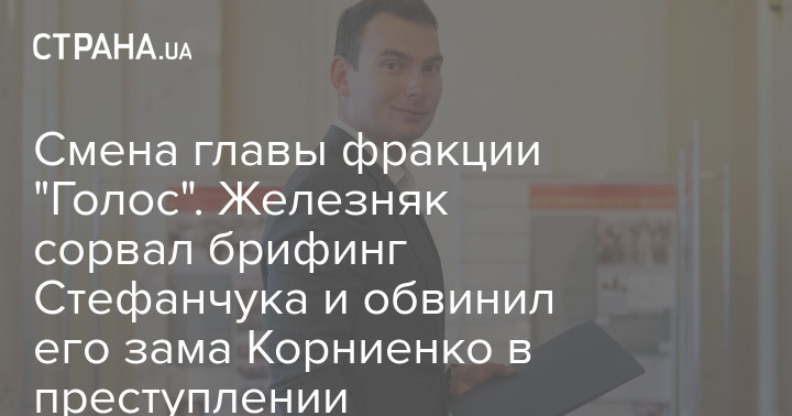 Бывший глава фракции "Голос" Ярослав Железняк, который сегодня уступил пост Александре Устиновой, сорвал брифинг главы Верховной Рады Руслана Стефанчука, заявив, что первый вице-спикер Александра Корниенко совершил преступление.