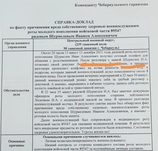 В челябинском Чебаркуле солдат, который проходил там срочную воинскую службу, по телефону поссорился со своей девушкой, после чего заперся в туалете и зашил себе рот.