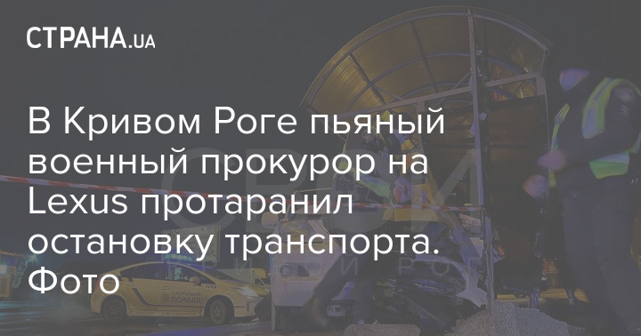 В Кривом Роге произошло ДТП с участием водителя Lexus, за рулем которого был пьяный военный прокурор из Одесской области Вадим Лапоха, снес часть остановки общественного транспорта.