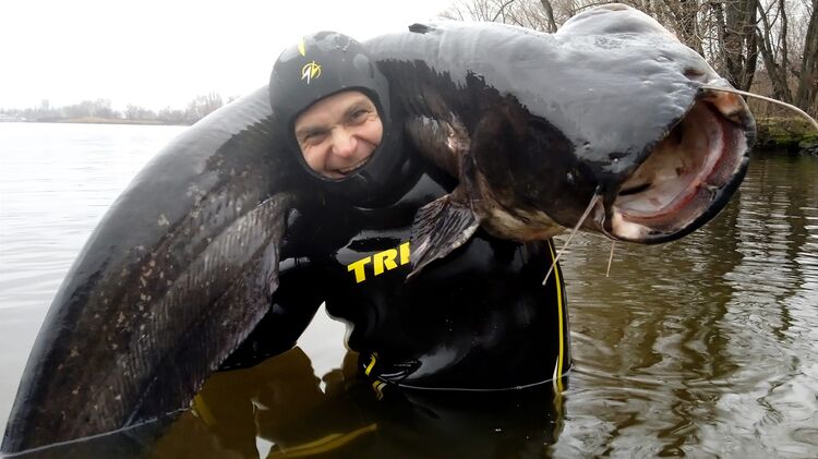 Сом атаковал охотника за ногу и попытался откусить стеклопластиковую ласту. Она лопнула под давлением челюстей рыбины, поэтому закончить эту схватку и отбуксировать сома на берег Громадскому удалось с большим трудом.