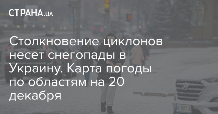 Столкновение циклонов несет снегопады в Украину. Карта погоды по областям на 20 декабря