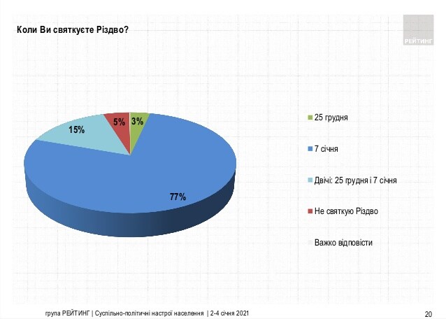 Но идти этот процесс может годами. А на сегодня главный ограничитель перехода на празднование в декабре - это миряне. По данным опроса группы "Рейтинг", который провели в прошлом январе, 77% респондентов заявили, что отмечают Рождество только 7 января.
