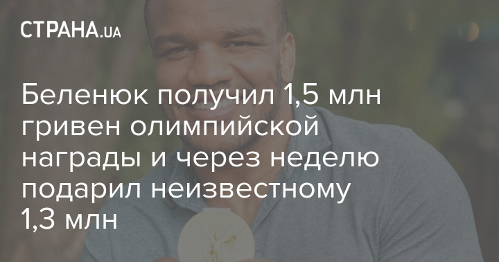 Беленюк получил 1,5 млн гривен олимпийской награды и через неделю подарил неизвестному 1,3 млн