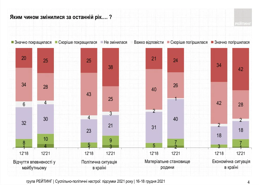 Более половины украинцев заявили о том, что их ощущение уверенности в будущем ухудшилось, и только 14% ответили, что уверены в завтрашнем дне.