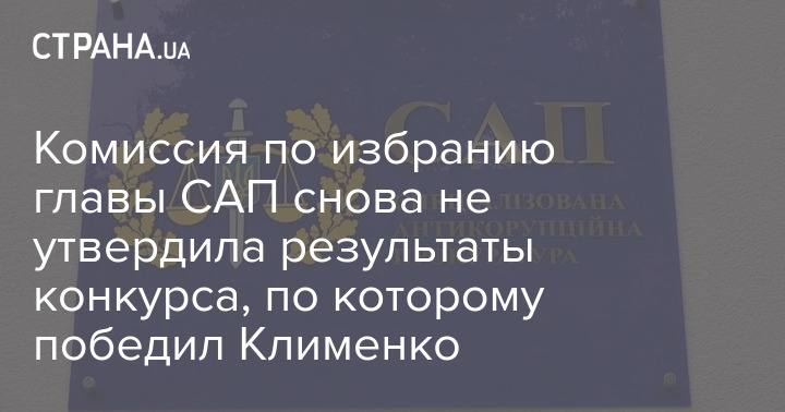 Комиссия по избранию главы САП снова не утвердила результаты конкурса, по которому победил Клименко
