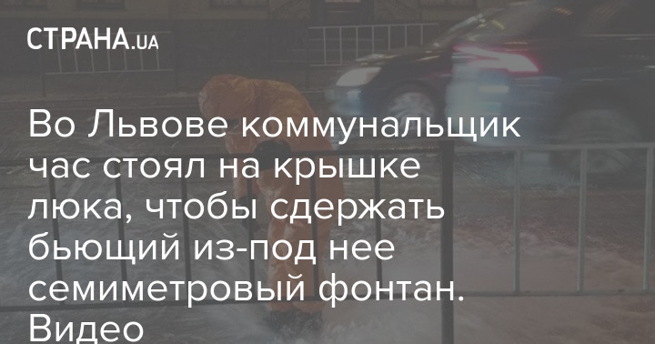 Во Львове коммунальщик час стоял на крышке люка, чтобы сдержать бьющий из-под нее семиметровый фонтан. Видео