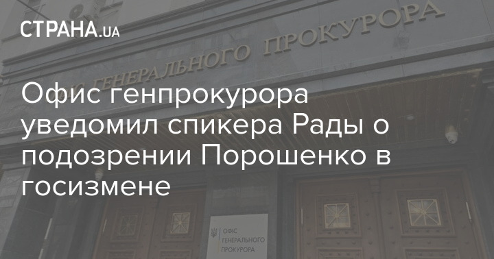 Офис генпрокурора уведомил спикера Рады о подозрении Порошенко в госизмене
