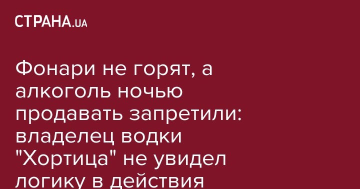 Фонари не горят, а алкоголь ночью продавать запретили: владелец водки "Хортица" не увидел логику в действия киевской власти