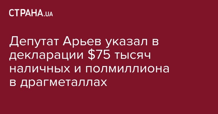 Депутат Арьев указал в декларации $75 тысяч наличных и полмиллиона в драгметаллах