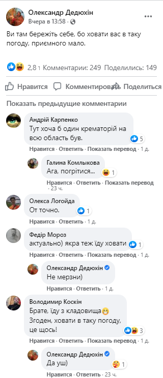 В комментариях к публикации другие священники ПЦУ выражают солидарность и жалуются на неудобство в захоронении людей зимой.