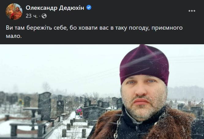 "Вы там берегите себя, потому что хоронить вас в такую погоду, приятного мало", - написал Дедюхин.