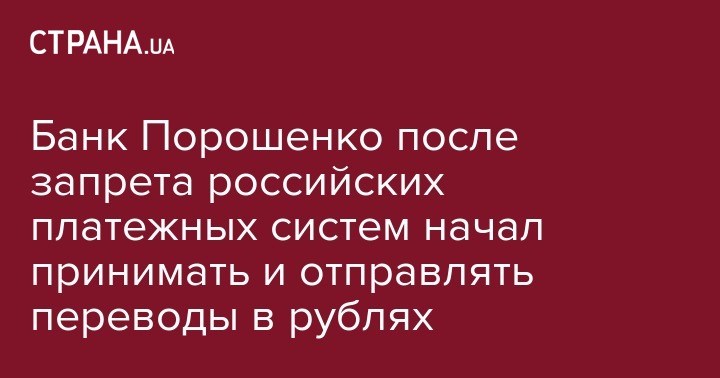 Банк Порошенко после запрета российских платежных систем начал принимать и отправлять переводы в рублях