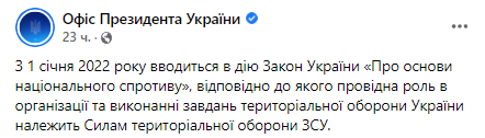 Речь идет о записи от 1 января, где сообщалось, что Владимир Зеленский назначил Юрия Галушкина командующим силами территориальной обороны Вооруженных сил Украины. Данная новость сопровождалась фотографией Зеленского, Галушкина, Резникова и других чиновников.