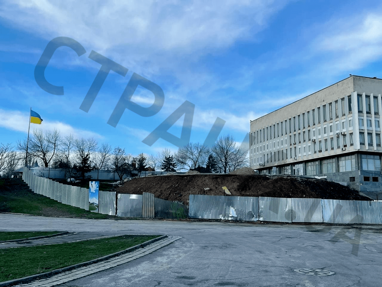 Сегодня с места падения херсонского флагштока появились фотографии и видео.