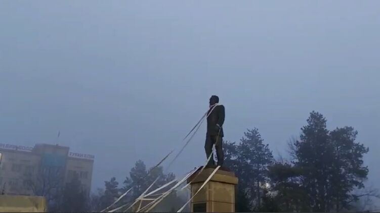 В Казахстане, где четвертый день продолжаются массовые протесты с требованием отставки правительства, снижения цен и освобождения задержанных, начался свой "Ленинопад". В городе Талдыкоргане под Алматы протестующие сносят памятник Нурсултану Назарбаеву.