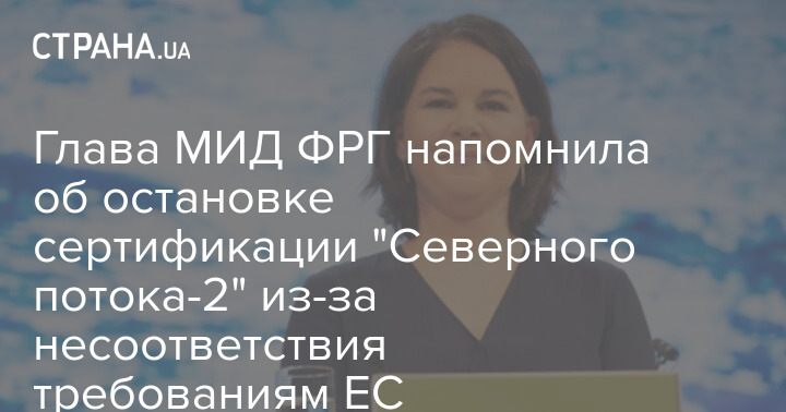 Процесс сертификации "Северного потока-2" остановлен, так как газопровод пока не соответствует требованиям ЕС.  Об этом заявила министр иностранных дел Германии Анналена Бербок в интервью итальянской газете La Stampa