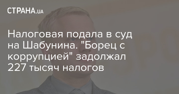 "Главное управление ГНС просит суд взыскать с Виталия Шабунина налоговый долг в размере более 200 тыс. гривень. Соответствующий иск поступил в Окружной административный суд города Киева. Истцом указано Главное управление ГНС в г. Киеве, ответчиком – Шабунин Виталий Викторович", - говорится в сообщении.