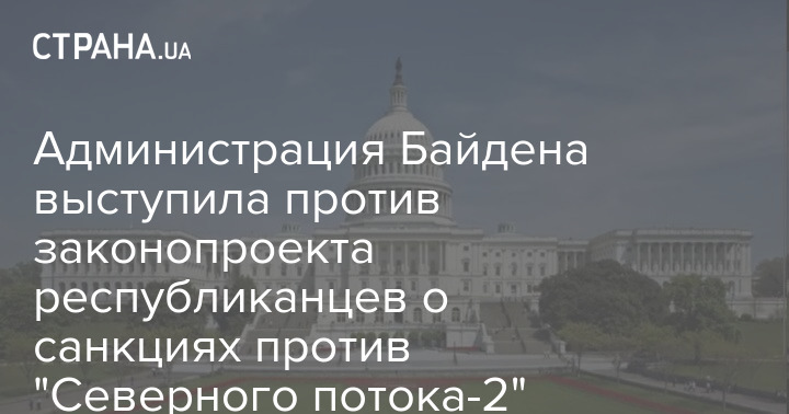 "Администрация крайне возражает против законопроекта, обязывающего ввести санкции против ответственных за работу над "Северным потоком 2", - говорится в заявлении Белого дома.
