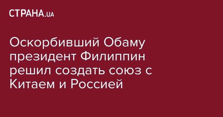 Оскорбивший Обаму президент Филиппин решил создать союз с Китаем и Россией