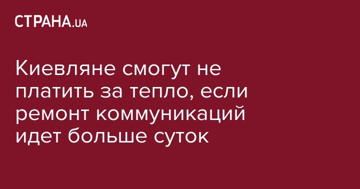 Киевлянам не будут начислять плату за тепло, если ремонт поврежденных теплосетей продолжается свыше суток. Об этом, со ссылкой на заявление столичных чиновников, сообщает УНИАН.