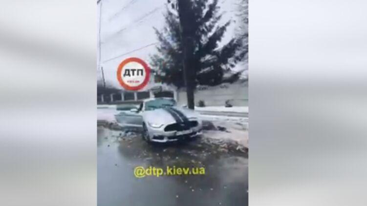 Водитель "Мустанга" не справился с управлением. Фото: скрин видео Facebook