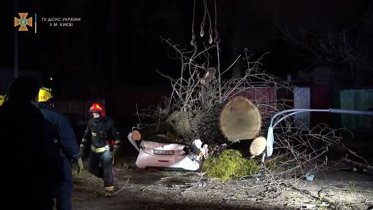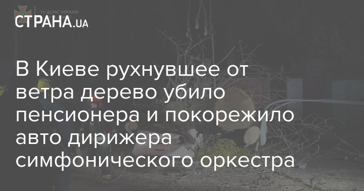 В Киеве рухнувшее от ветра дерево убило пенсионера и покорежило авто дирижера симфонического оркестра