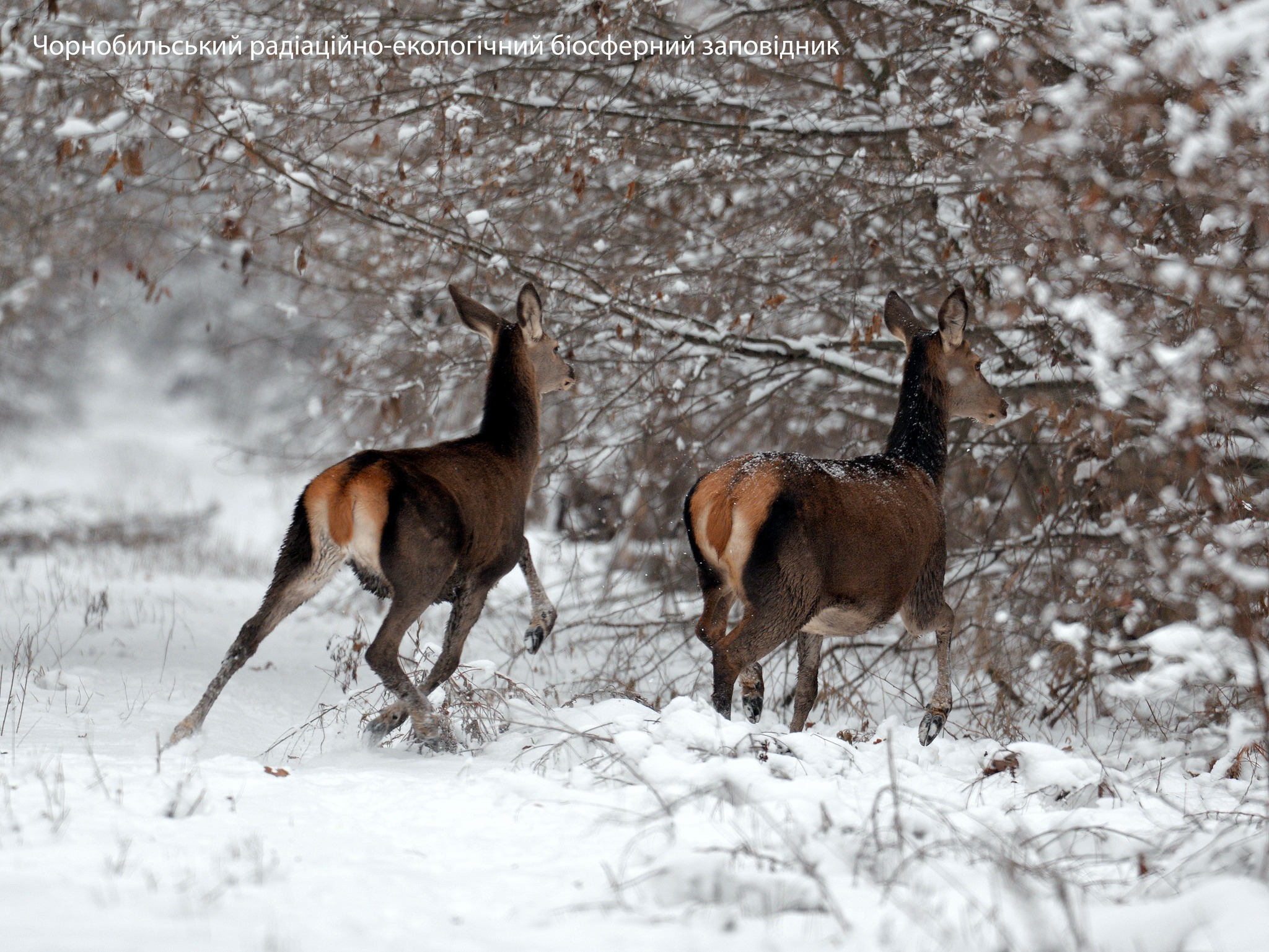 Чернобыльский заповедник показал фото двух бегущих оленей и голубого неба