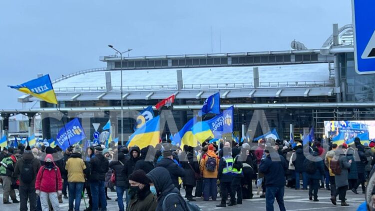 Под аэропортом "Жуляны" собралось около тысячи сторонников Порошенко. Фото