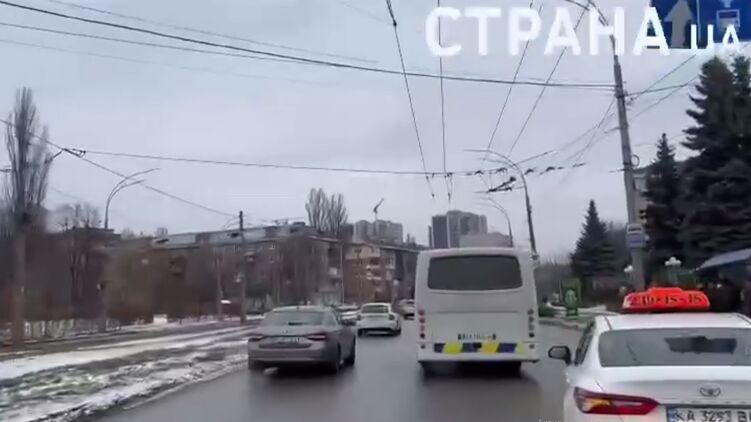 По пути в Печерский суд машины кортежа Порошенко нарушили правила дорожного движения. Они повернули налево с ряда, в котором можно ехать только прямо, и выехали на полосу общественного транспорта.
