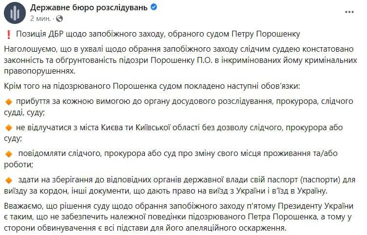 В ГБР вслед за Порошенко анонсировали обжалование личного обязательства для экс-президента