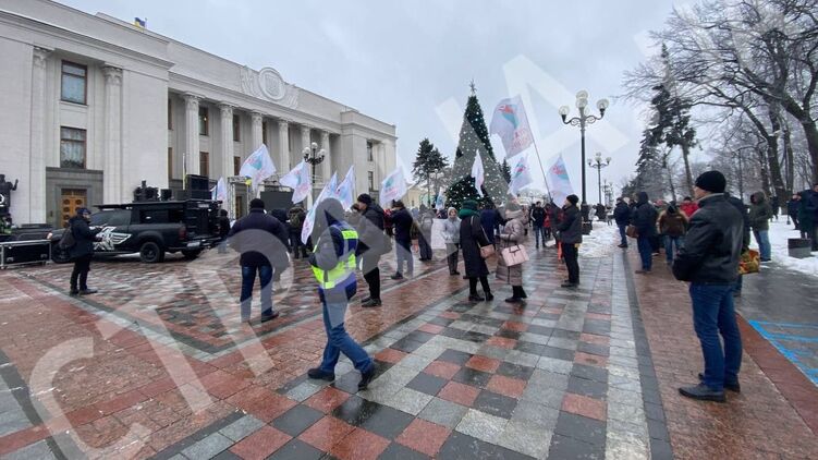 Утром в понедельник, 24 января, в Киеве под Верховной Радой началась акция протеста против карантинных ограничений и принудительной вакцинации. На нее собралось около нескольких сот человек.