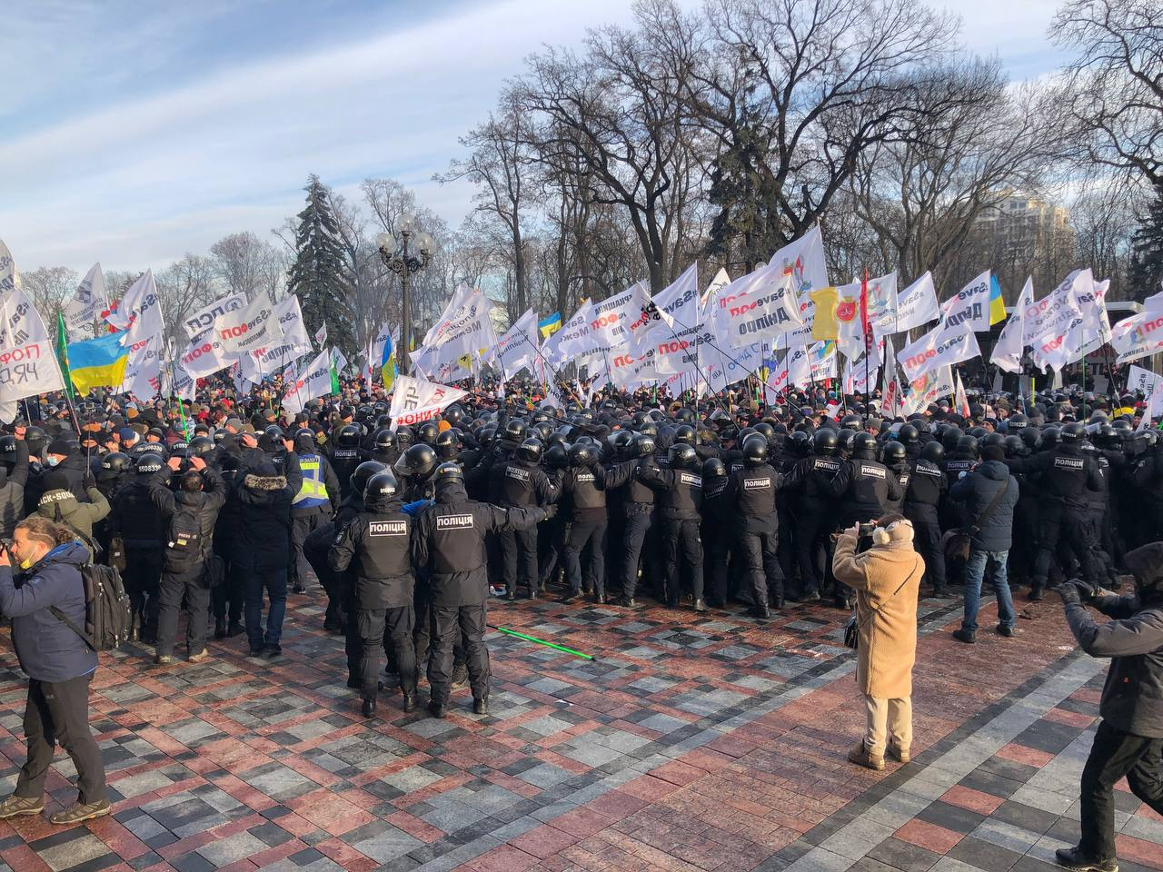 Под Радой идут столкновения спецназа с ФОПовцами, которые прорываются в парламент. Видео
