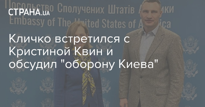 Мэр Киева Виталий Кличко встретился с временной поверенной в делах США в Украине Кристиной Квин. Стороны обсудили возможности защищать столицу силами территориальной обороны.