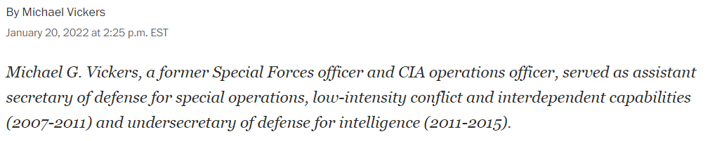 При этом газета, публикуя его мнение, не пишет, что Викерс имеет отношение к данной корпорации. А упоминает лишь, что он был офицером ЦРУ и замминистра обороны по разведке.
