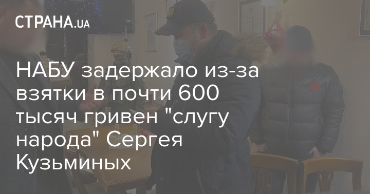 Национальное антикоррупционное бюро Украины задержало при получении взятки в 558 тысяч грн народного депутата от партии "Слуга народа" Сергея Кузьминых.