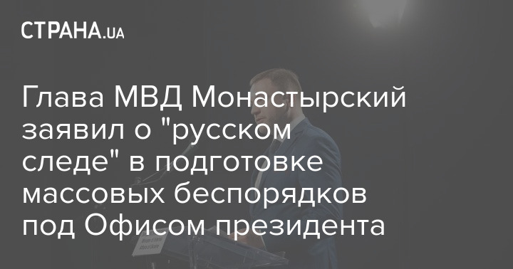 Глава МВД Монастырский заявил о "русском следе" в подготовке массовых беспорядков под Офисом президента