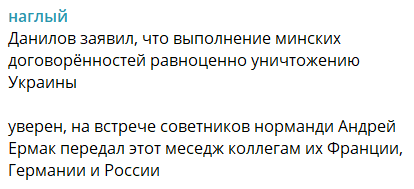 Данилов же, пожалуй, впервые заявил, что проблема именно в подписанном Украиной документе. И фактически озвучил отказ властей его исполнять.