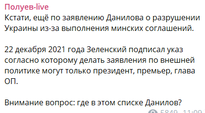 Другие интересуются, кто такой Данилов, чтобы делать эти заявления. И напоминают, что Зеленский недавно запретил комментировать внешнюю политику всем, кроме себя, Шмыгаля и МИДа.