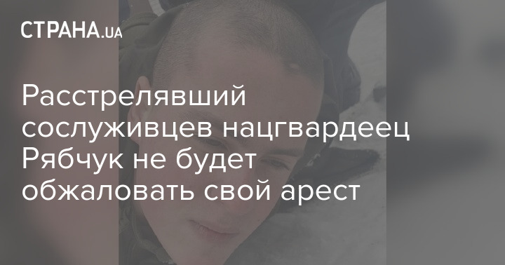 Солдат срочной службы Национальной гвардии Украины Артемий Рябчук, который расстрелял своих сослуживцев на территории Южного машиностроительного завода ("Южмаш") в Днепре, не намерен обжаловать меру пресечения в виде содержания под стражей.