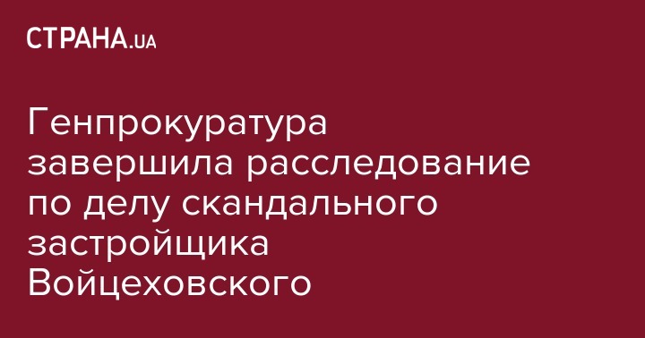 В Генеральной прокуратуре заявляют о завершении досудебного расследования по уголовному делу застройщика Анатолия Войцеховского. Об этом на своей странице в социальной сети Facebook написал заместитель генерального прокурора Дмитрий Сторожук.
