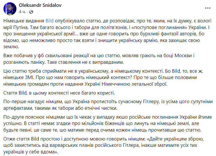 А вот среди "патриотической" общественности звучат мнения, что неважно - правду пишет Bild или нет. Главное, что газета пытается изменить мнение немцев на более антироссийское.