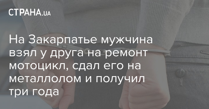 Житель Хустского района Закарпатской области получил три года тюремного заключения за сдачу на металлолом взятого на ремонт мотоцикла приятеля.