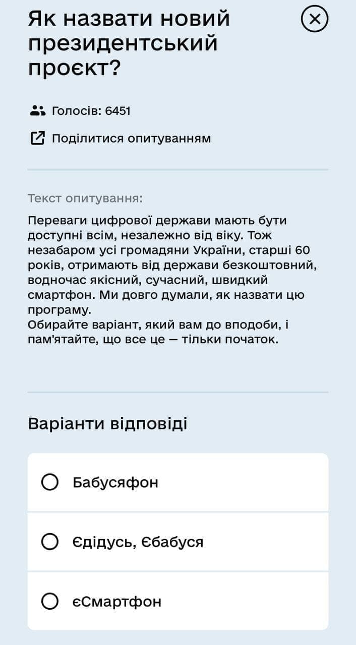 Через функцию "Опрос" у украинцев в "Дие" интересуются, как назвать эту программу. Есть несколько вариантов.