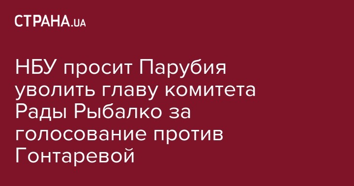 НБУ просит Парубия уволить главу комитета Рады Рыбалко за голосование против Гонтаревой