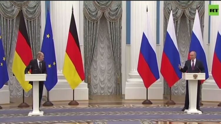 Между президентом России Владимиром Путиным и канцлером Германии ФРГ Олафом Шольцем разгорелась дискуссия в ходе совместной пресс-конференции в Москве.