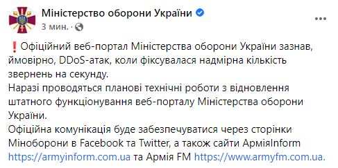 Во вторник, 15 февраля, перестал открываться сайт Минобороны Украины.