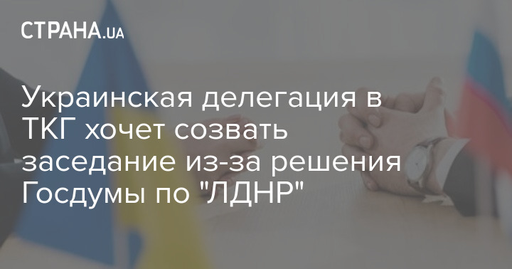"В связи с сегодняшним обращением российского парламента о признании так называемых "ЛДНР", делегация Украины в Трехсторонней контактной группе обратилась к Специальному представителю Действующего председателя ОБСЕ в Украине, представителю ОБСЕ в ТКГ с инициативой срочно созвать внеочередные консультации ТКГ для получения официальной информации делегации РФ по поводу их позиции и дальнейших шагов на базе решения законодательного органа РФ", - говорится в сообщении.